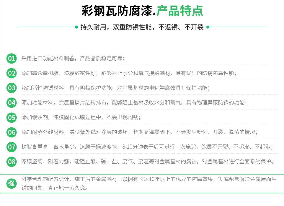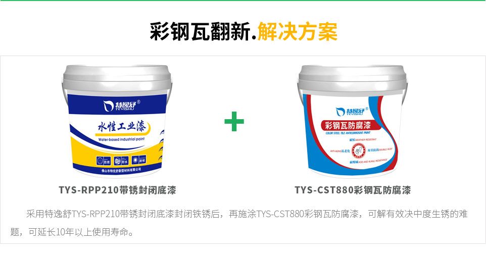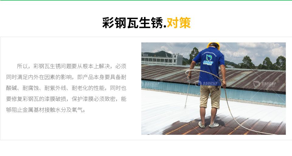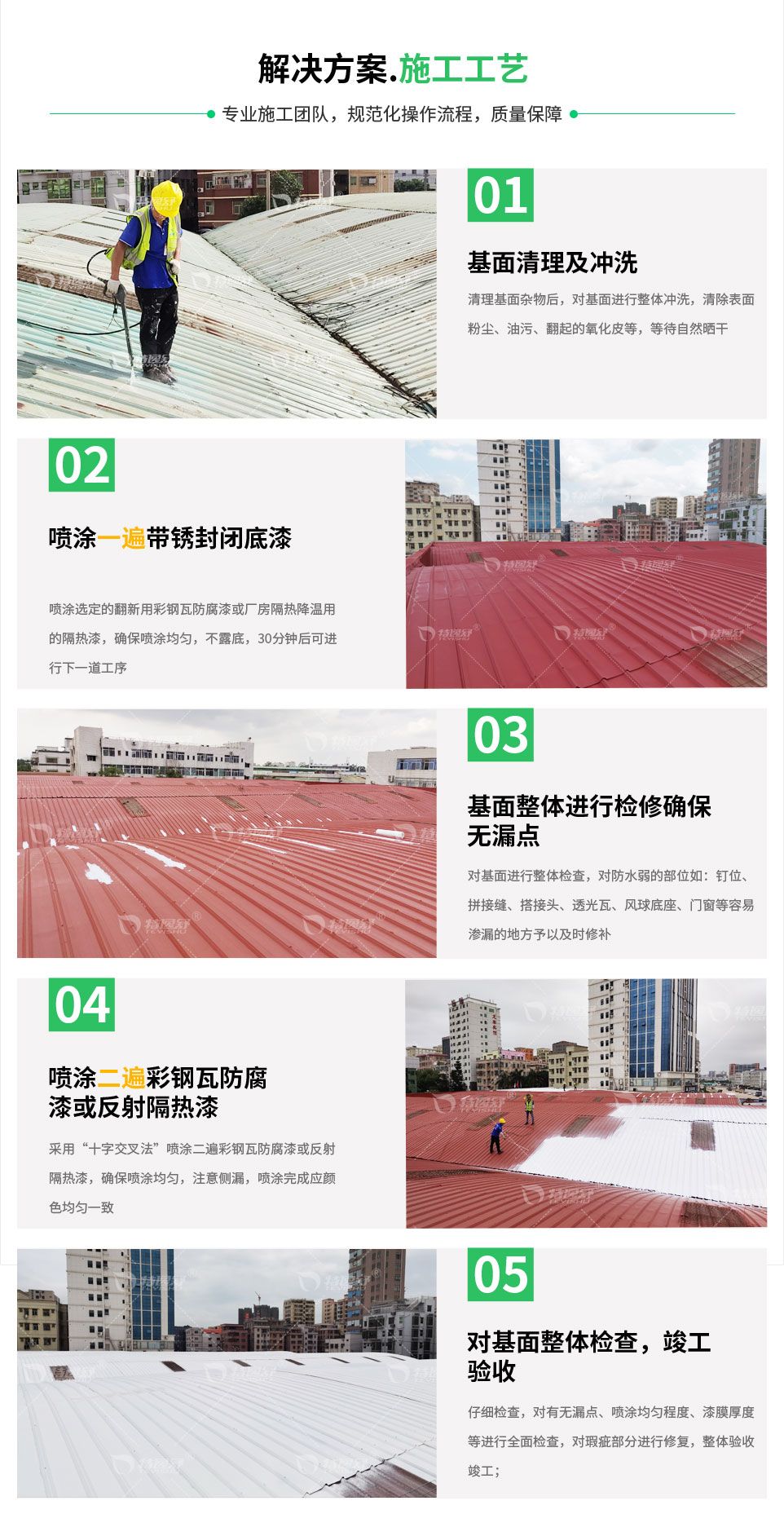 原漆膜大面積粉化變色,彩鋼瓦出現連片銹斑,但銹面基本平整。